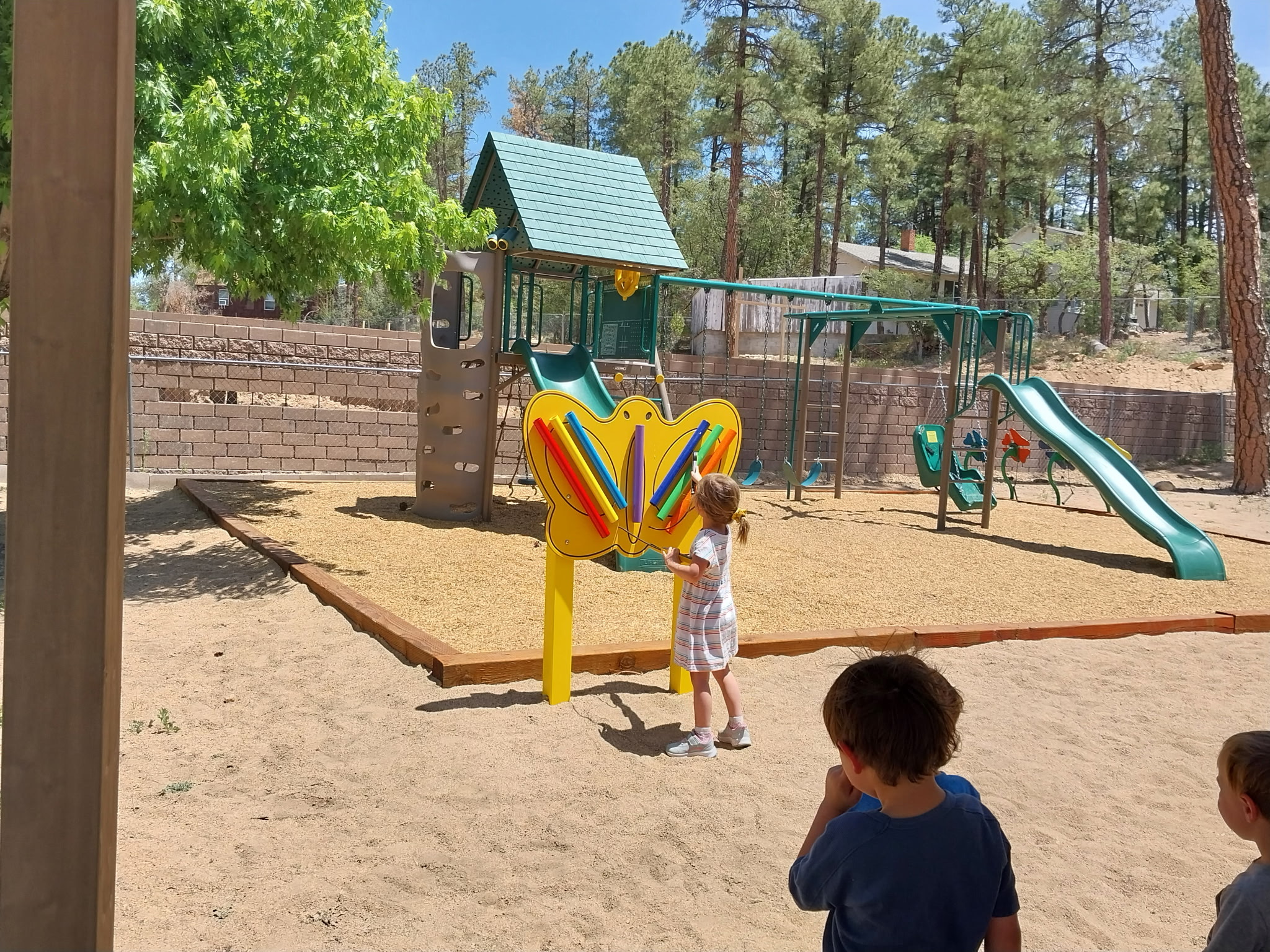Amidst the stunning pine trees, you’ll find our shared campus on South Park Avenue. We are in the lower level of Trinity Presbyterian Church. Outside and across from one of our entrances, picnic tables and a grassy field welcome outdoor eating and exploration. On the far North side of the parking lot is our large playground with musical components, a garden, and shade area. Montessori Children’s Academy is more than just a preschool. Schedule a family tour and discover a World of Difference!